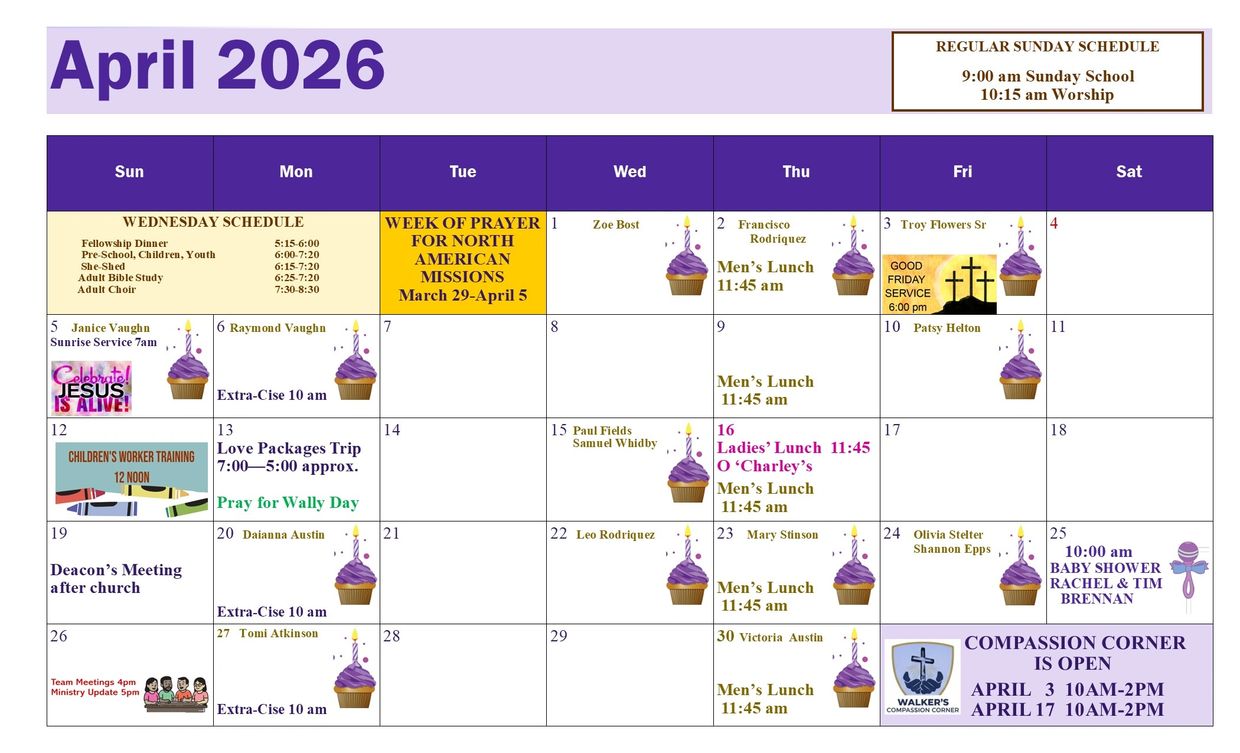 Join Walker men as they fellowship, share good news, and demonstrate Christian love in action. All men are invited to attend. Contact Paul Fields for more information.
