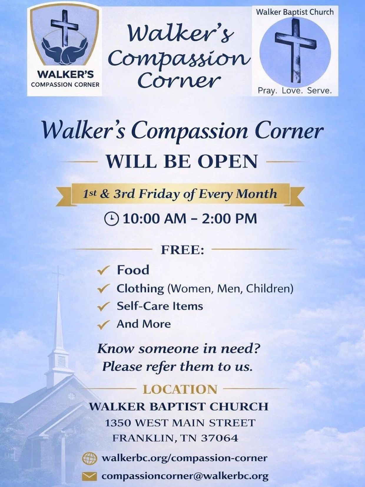 To embody Christ's love through practical service, meeting immediate physical needs while creating sacred spaces for prayer, connection, and community healing.